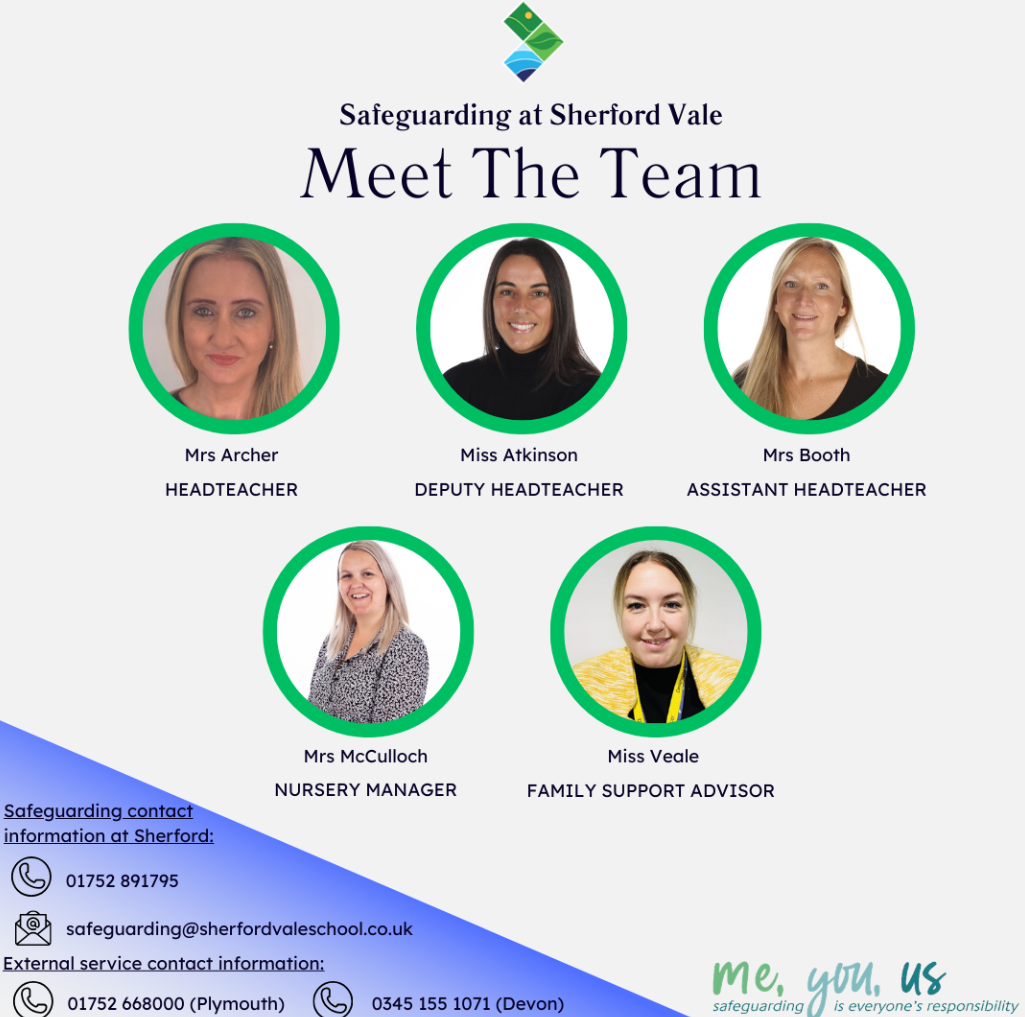 Sherford Vale School and Nursery recognises its moral and statutory responsibility to safeguard and promote the welfare of all children and we will provide a caring, positive, safe and stimulating environment that promotes the social, physical and moral development of the individual child. This will be underpinned by a culture of openness where both children and adults feel secure, able to talk and believe that they are listened to. We recognise that all staff have a full and active part to play in protecting our pupils from harm, and that the child’s welfare is our paramount concern. We will ensure that all adults who have contact with children in our school have been properly vetted and deemed suitable to work and support children in our care/charge. We will also ensure that all adults who have contact with children in our school have been trained to undertake their safeguarding responsibilities effectively. We maintain an attitude that ‘it could happen here’ where safeguarding is concerned. If you have any concerns, please contact the DSL team: safeguarding@sherfordvaleschool.co.uk